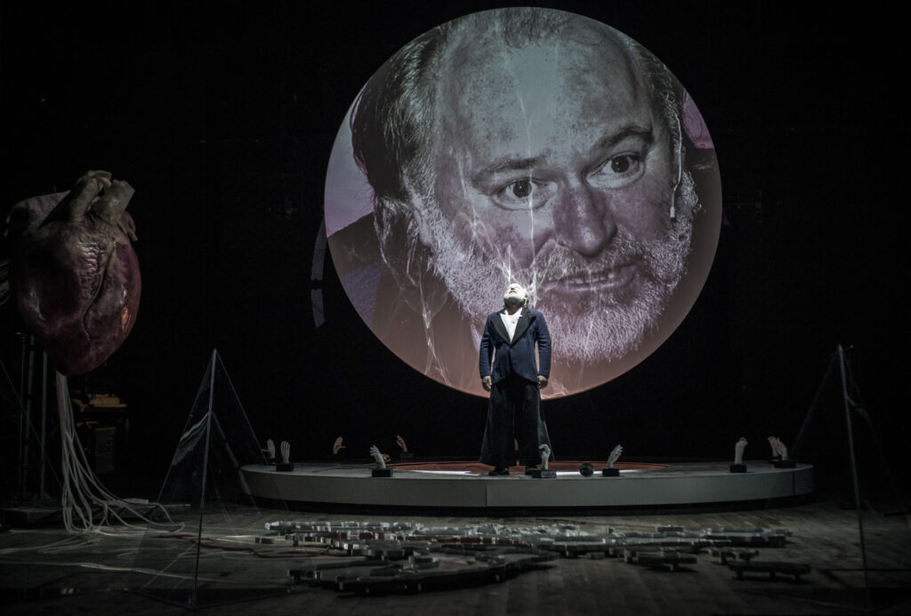 Widownię od sceny oddzielał rząd kilkunastu białych porcelanowych dłoni, a dalej – trójwymiarowych półprzezroczystych trójkątów przypominających ostry mur. W tyle stał napełniony wodą basen, do którego w pewnym momencie wlewała się krew ze sporych rozmiarów serca – wziętego z Pocztu Królów Polskich Garbaczewskiego – które rytmicznie kurczyło się i rozkurczało. Tam, gdzie słowa się zużywały, nośnikiem sensu stawała się precyzyjnie wymyślona wizualno-dźwiękowa dramaturgia (muzyka: Pedal Pushers). Gdy serce faktycznie zaczynało pompować krew, miało się wrażenie, że sala eksploduje od tego odgłosu. W spektaklu wybuchała plastikowa mapa Europy, której białe kontury zalewała płynąca prosto ze sztucznych żył gęsta, czerwona ciecz. Był to wyrazisty, oddziałujący afektywnie, a zarazem profetyczny obraz. W końcu – jak sugerowali twórcy – Europa była, jest i najprawdopodobniej jeszcze długo pozostanie splamiona krwią. Cecko z Garbaczewskim nie oskarżali jednak za taki stan rzeczy wyłącznie możnowładców czy polityków. Można było odnieść wrażenie, że winni są wszyscy – również ci w milczeniu siedzący na widowni. Stąd zapewne zawieszony nad sceną ekran, będący zarazem zwierciadłem odbijającym na zmianę publiczność i kulisy.