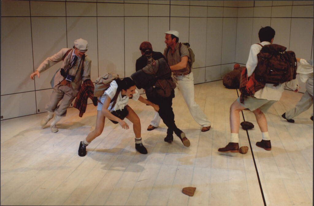 Ostentacyjnie teatralne jest też pojawienie się dwóch głównych bohaterów. U Gombrowicza studenci Witold i Fuks wędrują wśród tatrzańskich pejzaży; u Jarockiego przez całą pierwszą scenę maszerują dziarsko w kółko na pustej scenie, wytężając wzrok w kierunku wyimaginowanych szczytów, pokazując palcem nieistniejące domy i rozmawiając. Pochodzą jednak z dwóch różnych teatrów. Witold Oskara Hamerskiego to bez wątpienia figura z teatru współczesnego (a może po prostu figura z teatru Jerzego Jarockiego, pokrewna np. tym, które grywali Jerzy Trela i Jerzy Radziwiłowicz): ubrany w ciemny sweter i dżinsy, o powściągliwej gestykulacji i mimice, trudny tekst Gombrowicza podaje niskim, matowym głosem, z namysłem, a zarazem bezbłędnym wyczuciem muzyczności i osobliwego rytmu tej w gruncie rzeczy filozoficznej prozy. Wielokrotnie unieważnia czwartą ścianę, zwracając się wprost do widzów i komentując sceniczne wydarzenia. Z kolei Fuks Marcina Hycnara jest postacią rodem z przedwojennej komedii – pełen energii i entuzjazmu, zawadiacki, trochę jeszcze dziecinny chłopak ze zmierzwioną rudą czupryną, w drucianych okularkach i staroświeckim stroju podróżnika. Nic dziwnego – urodził się przecież w wyobraźni Witolda, a może powrócił z odmętów jego pamięci.