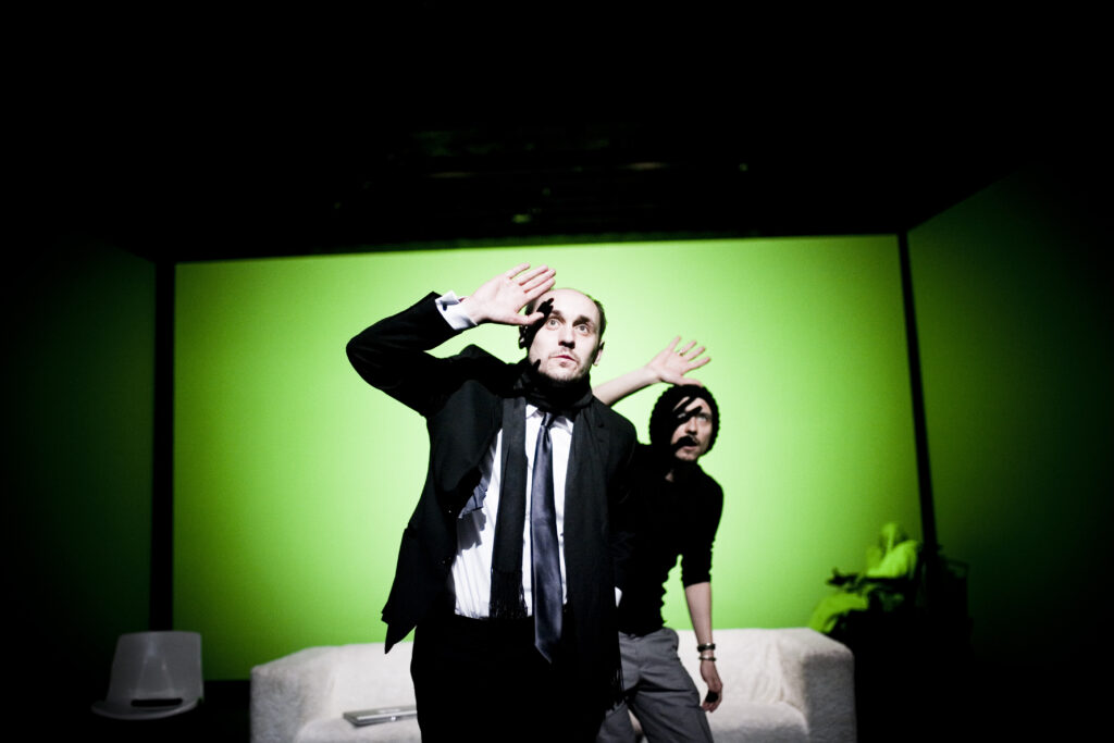TR Warszawa, Między nami dobrze jest Doroty Masłowskiej, reżyseria Grzegorz Jarzyna, scenografia Magdalena Maciejewska, kostiumy Magdalena Musiał, reżyseria światła Jacqueline Sobiszewski, prapremiera w Schaubühne Am Lehniner Platz w Berlinie 26 marca 2009, premiera polska 5 kwietnia 2009.