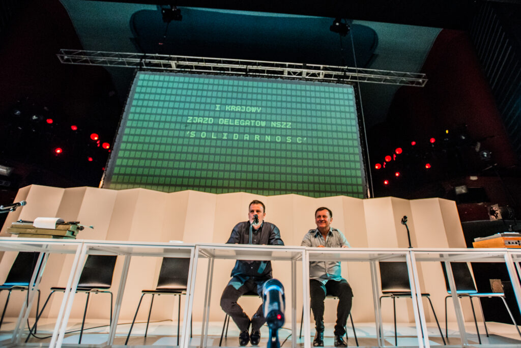 Teatr Polski im. Hieronima Konieczki w Bydgoszczy, Solidarność. Rekonstrukcja, reżyseria i scenografia Paweł Wodziński, współpraca dramaturgiczna Piotr Grzymisławski, muzyka Karol Nepelski, wideo Magda Mosiewicz, światła Michał Głaszczka, premiera 23 czerwca 2017.
