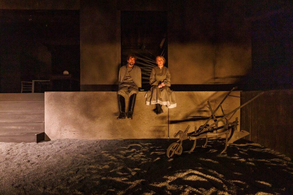 Jest to spójne z konceptem, którego nie ujawnię, bo scenariusz zasadza się na plot-twiście wyjaśnionym w finale spektaklu. Tu zarazem odsłania się pewien problem z tym przedstawieniem – jest ono bardzo literackie, trochę jak opowiadania Wiesława Myśliwskiego czy Tadeusza Nowaka – do poczytania raczej niż do grania na scenie. Narracyjność historii widać nie tylko w relacjonujących sytuacje monologach postaci, ale i w ich głosach z offu, które „odkrywają ich myśli” – jak konstruktów literackich. A w takim „gadaniu” ciężko uchwycić to, na czym twórcom zależało – poezję, metafizykę, tajemnicę, wielkie serio. Uchwycić i nie sprowadzić do banału, jakiegoś truizmu, który w lekturze może byłby do przełknięcia, ale na scenie szeleści papierem.