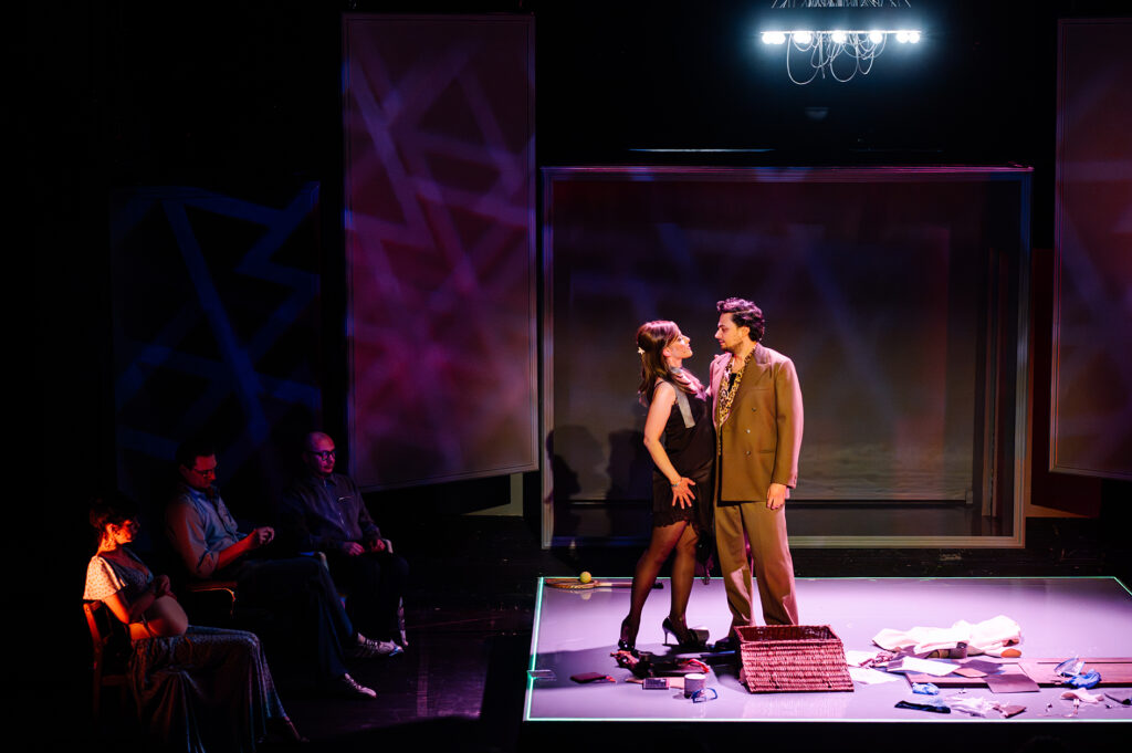 Zaskakującą zmianę nastroju „wynagradza” użycie czytelnych – często zbyt wyrazistych – środków scenicznych. Podczas rodzinnego spotkania widzowie mają szansę poznać prawdziwe, ukrywane pod konwencjonalnymi maskami myśli postaci dzięki projekcjom treści wysyłanych przez nie wiadomości tekstowych. Po informacji o zamachach terrorystycznych dwoje bohaterów manifestuje swoje poglądy, zakładając koszulki z odpowiednimi nadrukami. Aspiracje Clothilde (nowa w zespole Teatru Nowego, pozytywnie wyróżniająca się w obsadzie Sara Kociołek), rzekomo pragnącej nieść pomoc uchodźcom na Morzu Śródziemnym, sprowadzają się do marzeń o romansie ze znajomą aktywistką na wyspie… Lesbos. Uzależniona od operacji plastycznych matka przybiera pozy wampa, a jej partner (Jan Romanowski) – uroczego macho. Odtrącony przed laty przez ojca, nieheteronormatywny Paul (Łukasz Chrzuszcz) planuje nowe otwarcie swojej kariery medialnej, o czym mówi kilkukrotnie, za każdym razem powtarzając ten sam, nieśmieszny dowcip oparty na grze słów. Emocji sztywnego Samuela nie poruszy ani polska żona, ani dziecko, ani informacja o nieznanym bracie, tylko groźba załamania kariery.