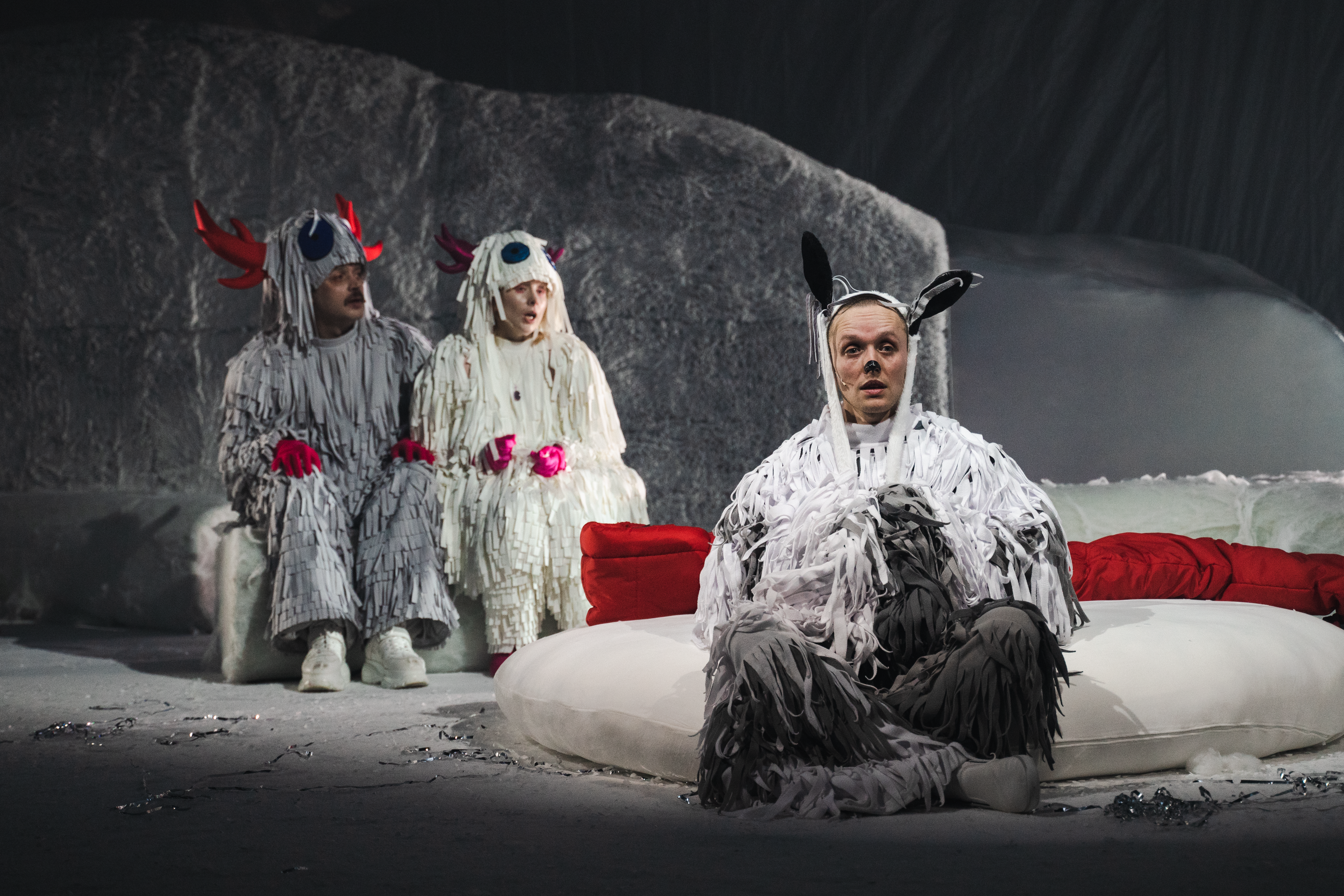 BB: Z Kasią znam się jeszcze z Białegostoku. Nasze drogi gdzieś się już przecinały w życiu. Tutaj się poznaliśmy lepiej. To był bardzo specyficzny rodzaj pracy, bo mieliśmy na ten spektakl mało czasu. Były dwie obsady… Bardzo trudno mi o tym mówić. Mam poczucie, że była to bardzo dobra i sprawna realizacja świetnie wymyślonego spektaklu. Ale chciałbym jeszcze bardziej zgłębić tę wyobraźnię, w dłuższym procesie, gdzie można by było jakoś się pozderzać i pobadać.