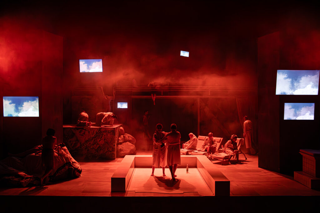Pierwsza część spektaklu jest intrygująca. Akcja rozwija się niespiesznie, pozornie niewiele się dzieje, lecz symultanicznie rozgrywane epizody – w przestrzeniach imitujących hotelowy basen, gabinet masażysty, pokój zabiegowy czy sypialnię (scenografia Natalia Mleczak) – pozwalają stopniowo poznawać bohaterów. Trudna do jednoznacznego opisania, lecz wyraźnie wyczuwalna atmosfera nadciągającej katastrofy skutecznie podtrzymuje napięcie. Dramaturgię wzmacniają konsekwentnie stosowana filmowa konwencja oraz obecność kamery rejestrującej wydarzenia. Zbliżenia ukazujące subtelne zmiany w emocjach bohaterek i bohaterów oglądamy równocześnie na żywo i na ekranach telewizorów ustawionych przy scenie (wideo Natalia Sroka). Reżyserowi i współtworzącym scenariusz dramaturżkom (Krysia Bednarek i Marysia Stasiak) udaje się uchwycić pustkę i schyłkowość świata pozornego luksusu, dobrobytu i dobrostanu, które hotel ma zarówno symbolizować, jak i produkować.