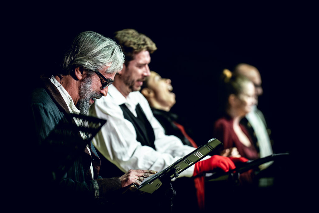 Rzecz dzieje się na pustej scenie, z powodu trwającego remontu ogołoconej z kulis i podłogi. Publiczność ma wgląd w techniczne zaplecze i konstrukcję tej części budynku, spiętrzoną na wysokość sześciu kondygnacji. Mamy więc materialny i pamięciowy reset, gruntowne oczyszczenie pola, na którym nastąpi urzeczywistnienie kolejnej utopii Całości. Pośrodku stoi kilka pulpitów, tablety i siedmioro aktorów (Katarzyna Janekowicz, Agata Obłąkowska-Mazurkiewicz, Jolanta Zalewska, Dariusz Bereski, Marek Feliksiak, Igor Kowalik, Edwin Petrykat) w kostiumach z różnych epok. Tworzą zbiorowe medium, przez które przemawiają postacie z nieistniejących już przedstawień. Scenariusz przypomina patchwork utkany z wypisów z archiwalnych egzemplarzy: czasem są to zdania, fragmenty dialogów, innym razem – tekstowe „otwarcia” spektakli. Do przedstawień, z których pochodzą, nie ma już dostępu, można co najwyżej wywołać ich echa, zapisane w tekstach. Ziemilski zaufał performatywnej mocy języka. To żywa mowa jest tu narzędziem kreacji: wypowiadane kwestie odtwarzają zarysy ról i szkicują sytuacje; fragmenty różnych dramatów wchodzą ze sobą w dialog, komentują się nawzajem, czasem przewrotnie ripostują (jak w ciągu bon motów, sprowokowanych kwestią: „Być albo nie być”), budując nowe, zaskakujące konteksty. Gry słowami, dowcipne kombinacje fraz i fruwające w powietrzu retoryczne evergreeny tworzą chwilami atmosferę dadaistycznej zabawy.