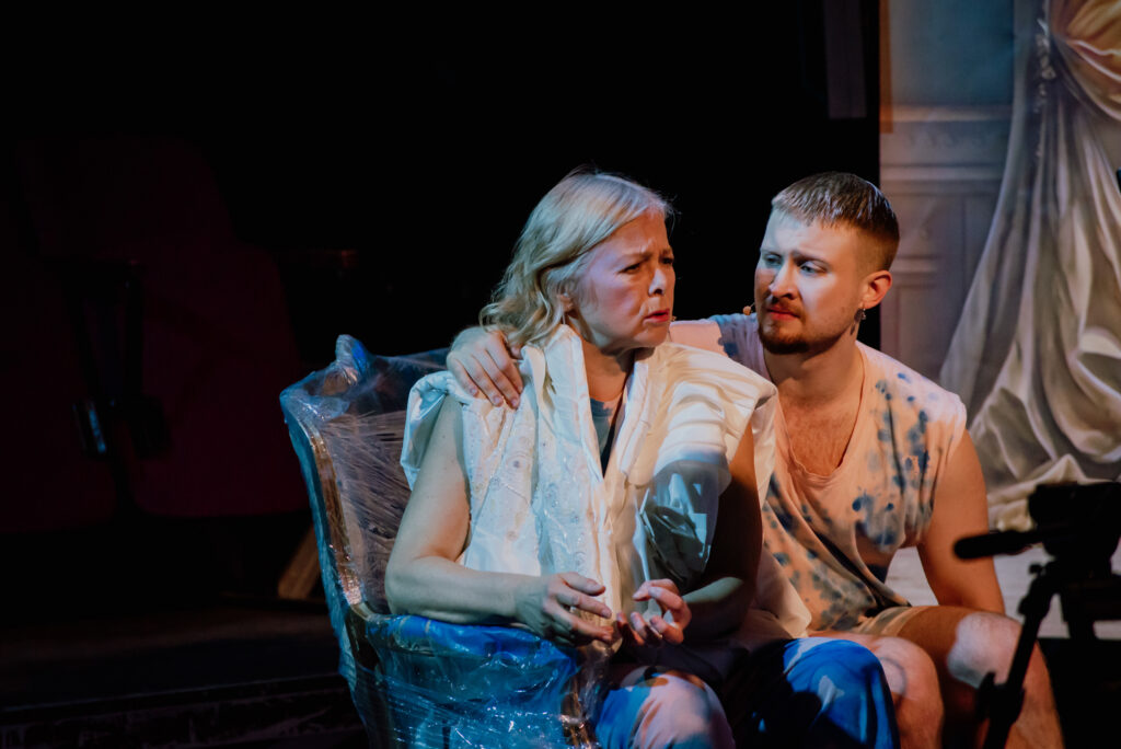 EK: To rezonuje z tym, jak sam pracuję, ale nie zawsze było to dla mnie proste – jest w tym ryzyko. Pamiętam jedną próbę do Dobrze ułożonego młodzieńca, która była dla mnie ciężka. To była scena rozbierania. Miałem obiekcję, dotyczącą tego, że Eugeniusz ma pod spodem „tradycyjną” żeńską bieliznę – chodziło o to, żeby było więcej warstw ubrania. Pomyślałem sobie: „Dobra, jestem już długo w tranzycji, co mi się niby stanie, jak założę gorset?”. Ale jak założyłem, to uderzyła mnie jakaś dysforia. Popłakałem się i powiedziałem: „Nie, Wiktor, nie zrobię tego. To dla mnie za dużo”. Natychmiast z tego zrezygnowaliśmy.