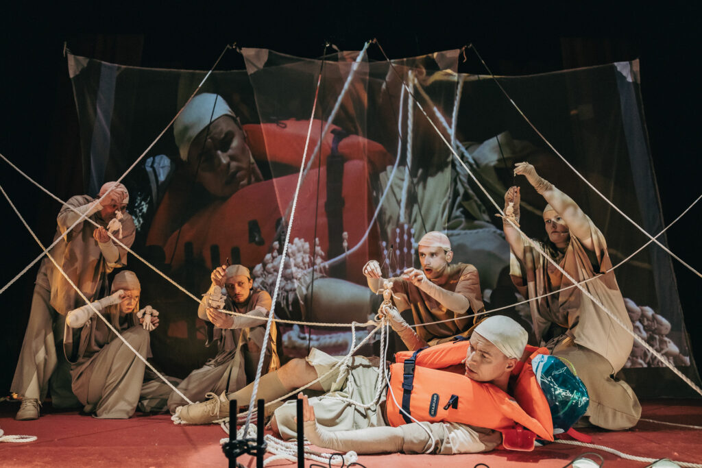 Latająca wyspa. Jeśli widzieliście Życie seksualne dzikich Krzysztofa Garbaczewskiego z Nowego Teatru z 2011 roku, pamiętacie ten podstawowy element scenografii Aleksandry Wasilkowskiej – czarną, unoszącą się nad głowami widzów konstrukcję, przemierzającą przestrzeń. Piętnaście lat później rewelacyjnie zagrane, króciutkie Podróże Guliwera przypomniały mi tamten spektakl.